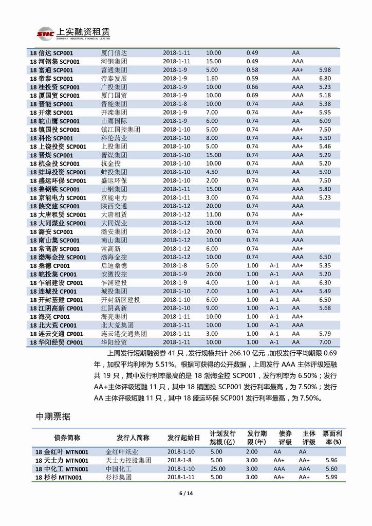 | 當(dāng)前位置:新聞中心 > 上實(shí)-融資工具周報(bào)20180105-20180112 | |||||