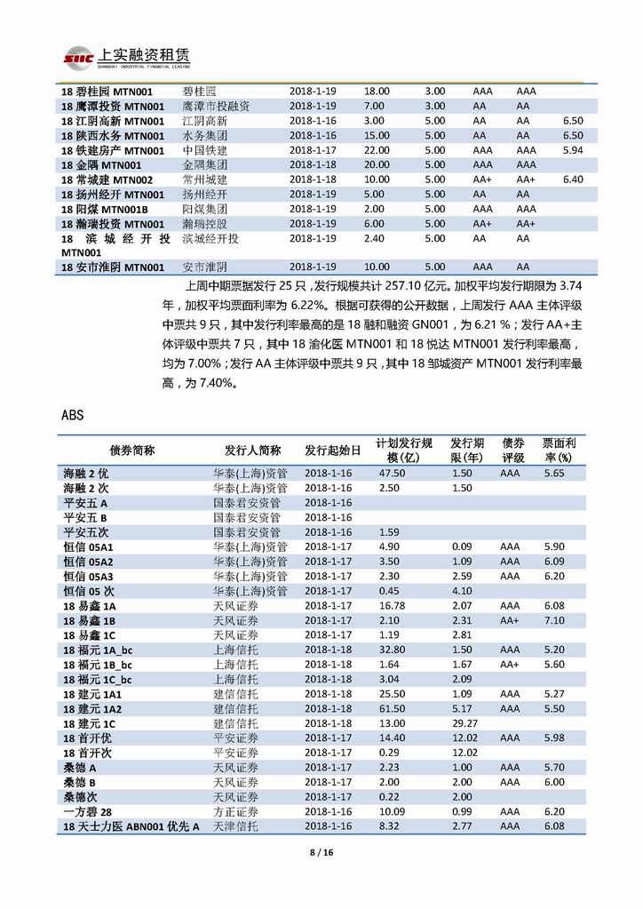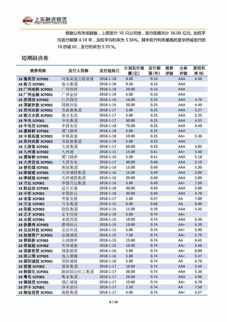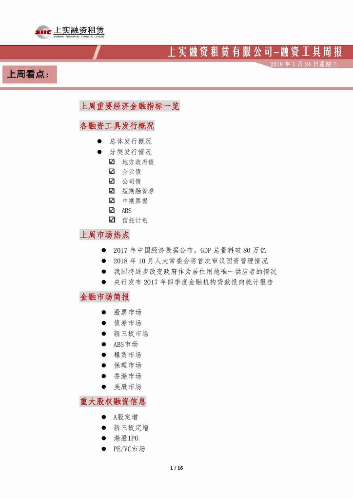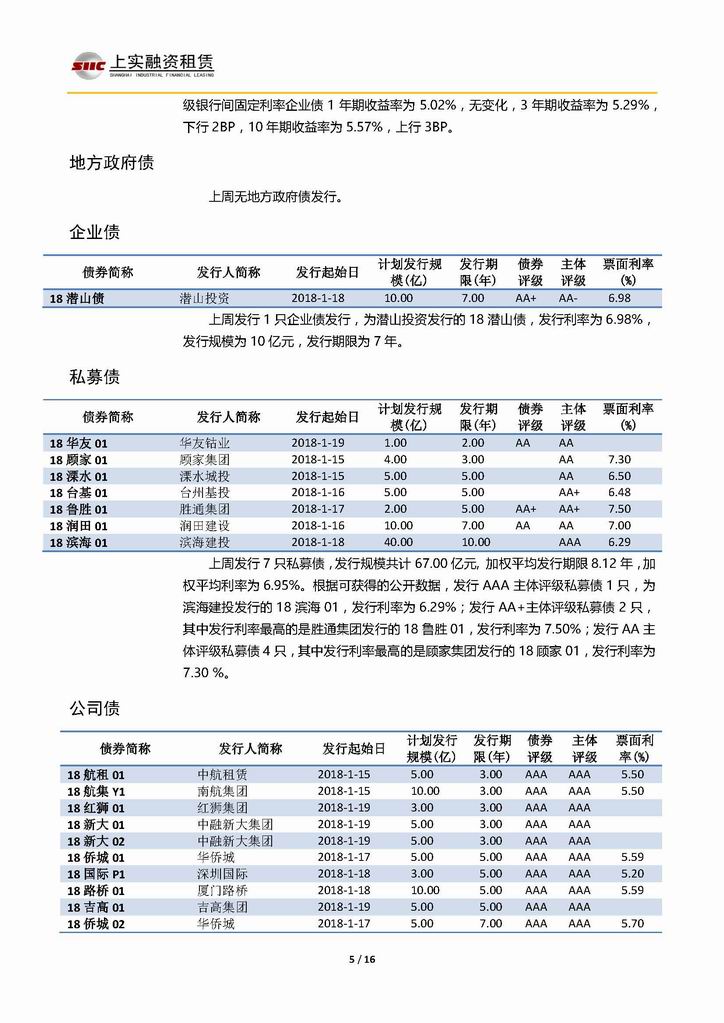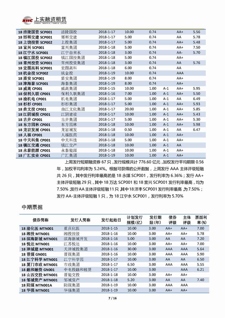 | 當(dāng)前位置:新聞中心 > 上實(shí)-融資工具周報(bào)20180112-20180119 | |||||
