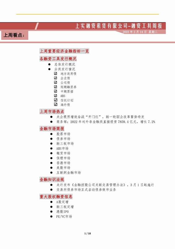 | 當(dāng)前位置:新聞中心 > 上實-融資工具周報2023.2.6-2023.2.10 | |||||