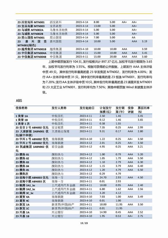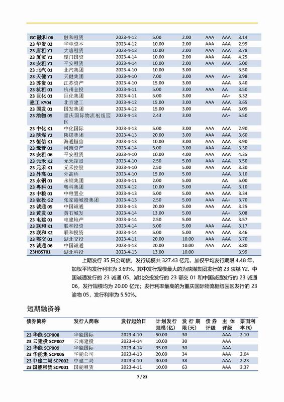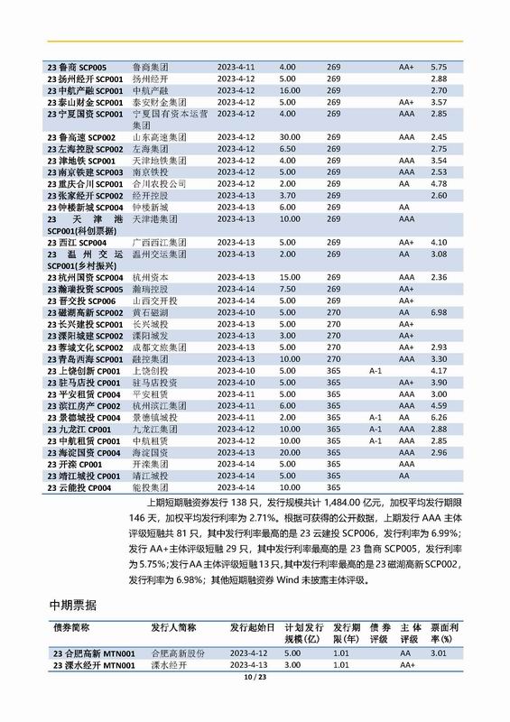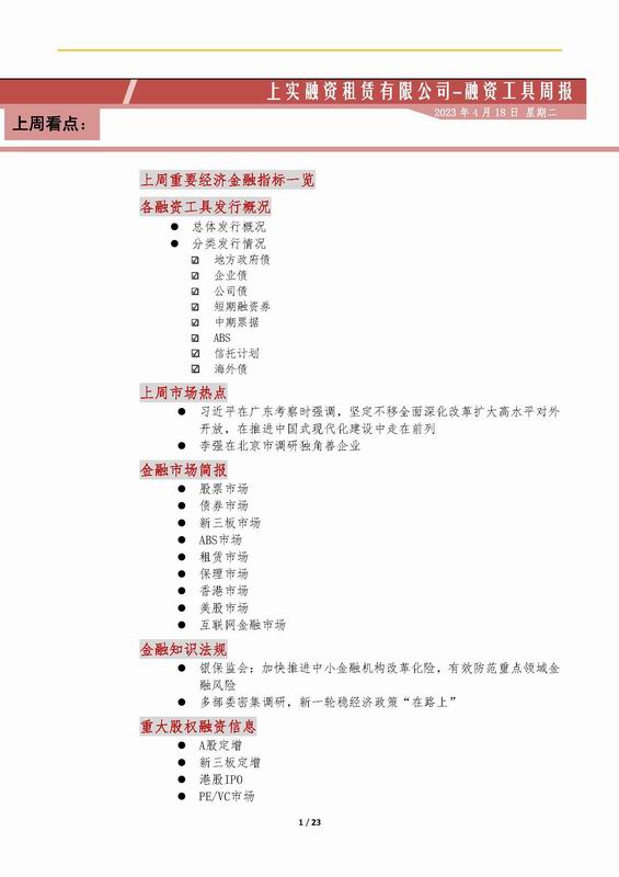| 當(dāng)前位置:新聞中心 > 上實(shí)-融資工具周報(bào)2023.4.10-2023.4.14 | |||||