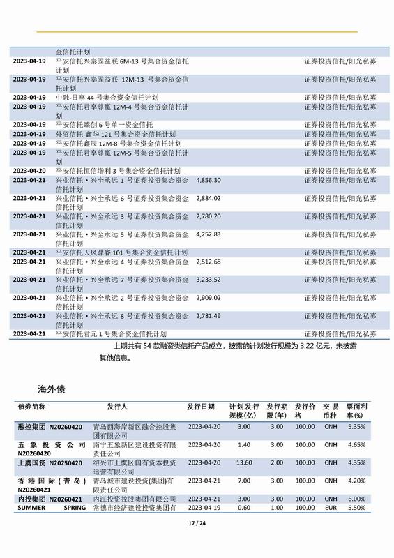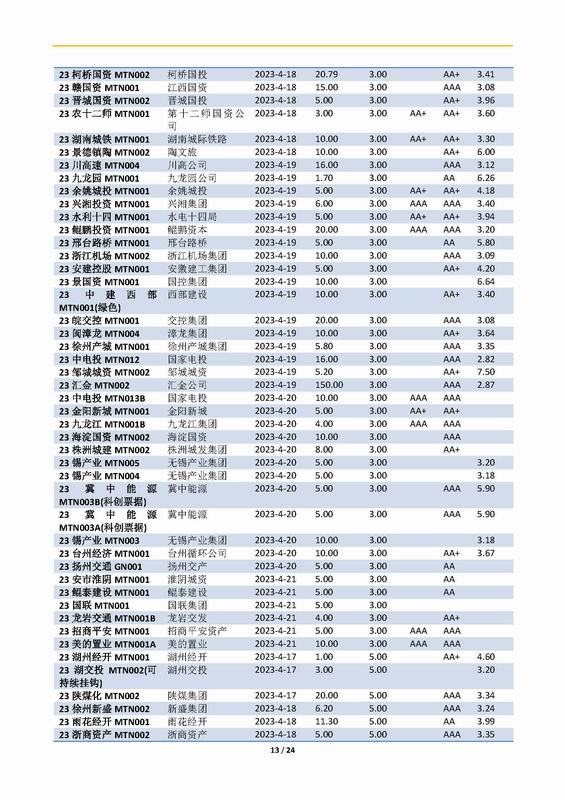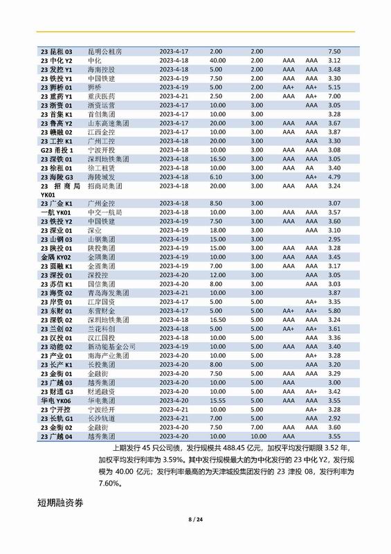 | 當(dāng)前位置:新聞中心 > 上實(shí)-融資工具周報(bào)2023.4.17-2023.4.21 | |||||