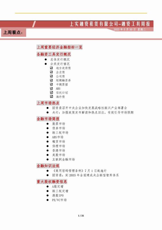 | 當(dāng)前位置:新聞中心 > 上實(shí)-融資工具周報(bào)2023.5.22-2023.5.26 | |||||