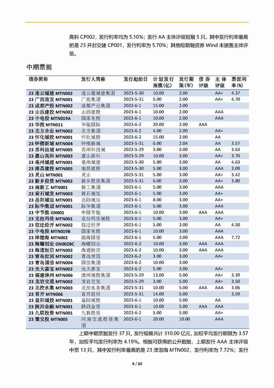 | 當(dāng)前位置:新聞中心 > 上實-融資工具周報2023.5.29-2023.6.2 | |||||