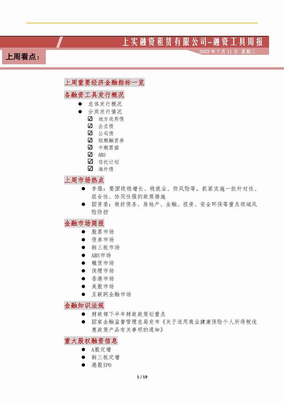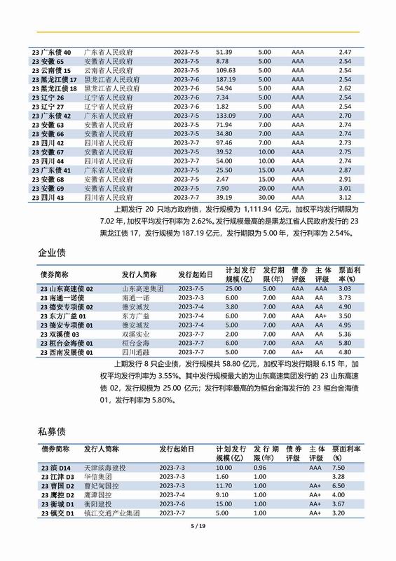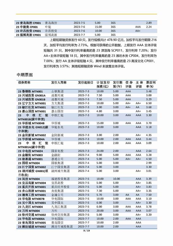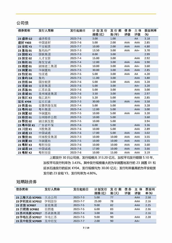 上實-融資工具周報2023.7.3-2023.7.7