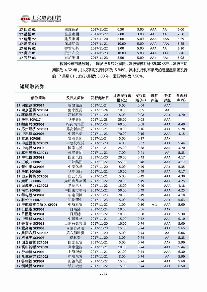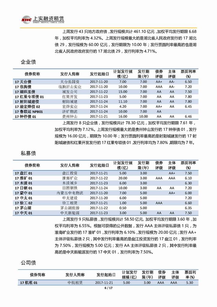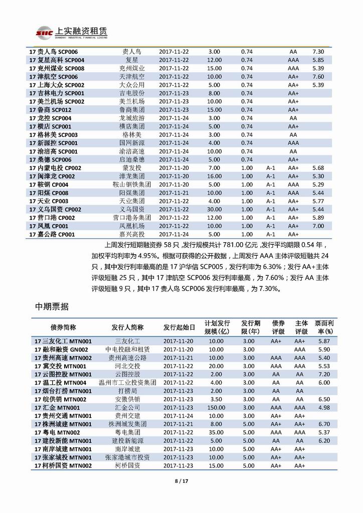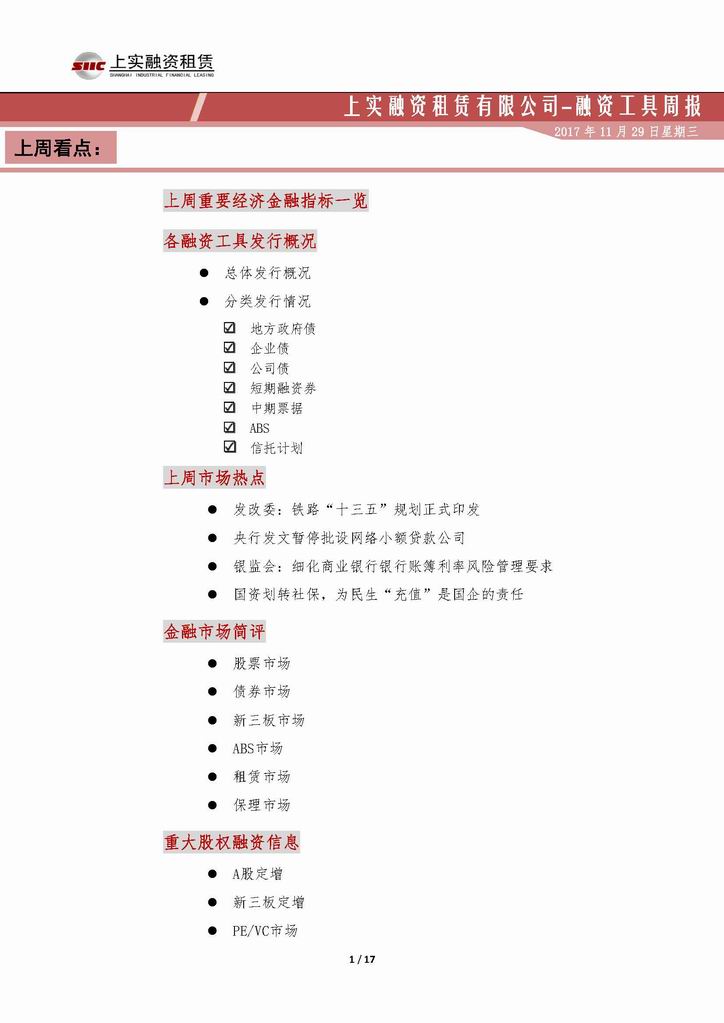 | 當(dāng)前位置:新聞中心 > 上實(shí)-融資工具周報(bào)20171117-20171124 | |||||