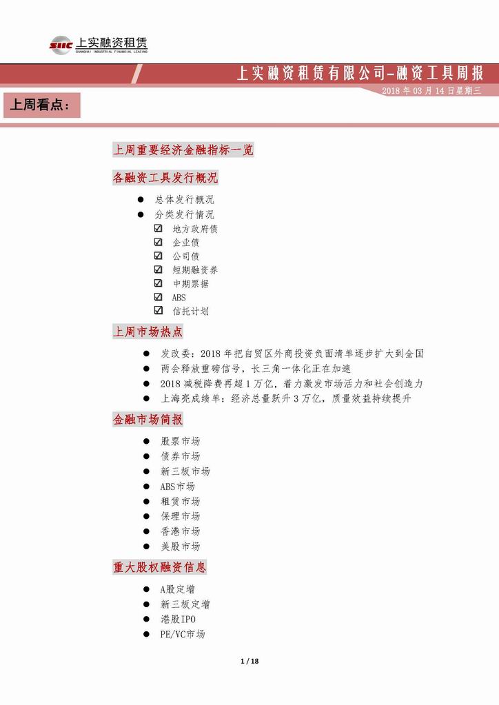 | 當(dāng)前位置:新聞中心 > 上實(shí)-融資工具周報(bào)20180302-20180309 | |||||