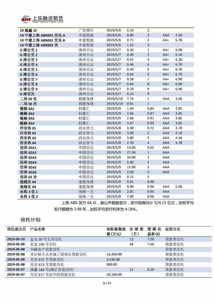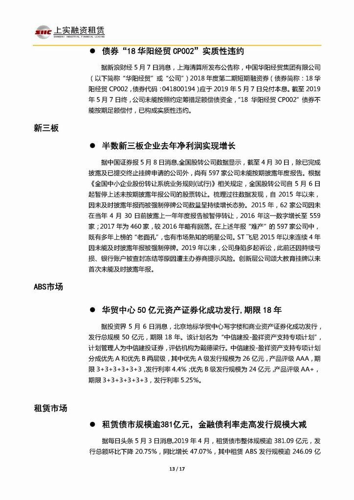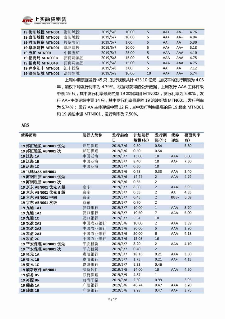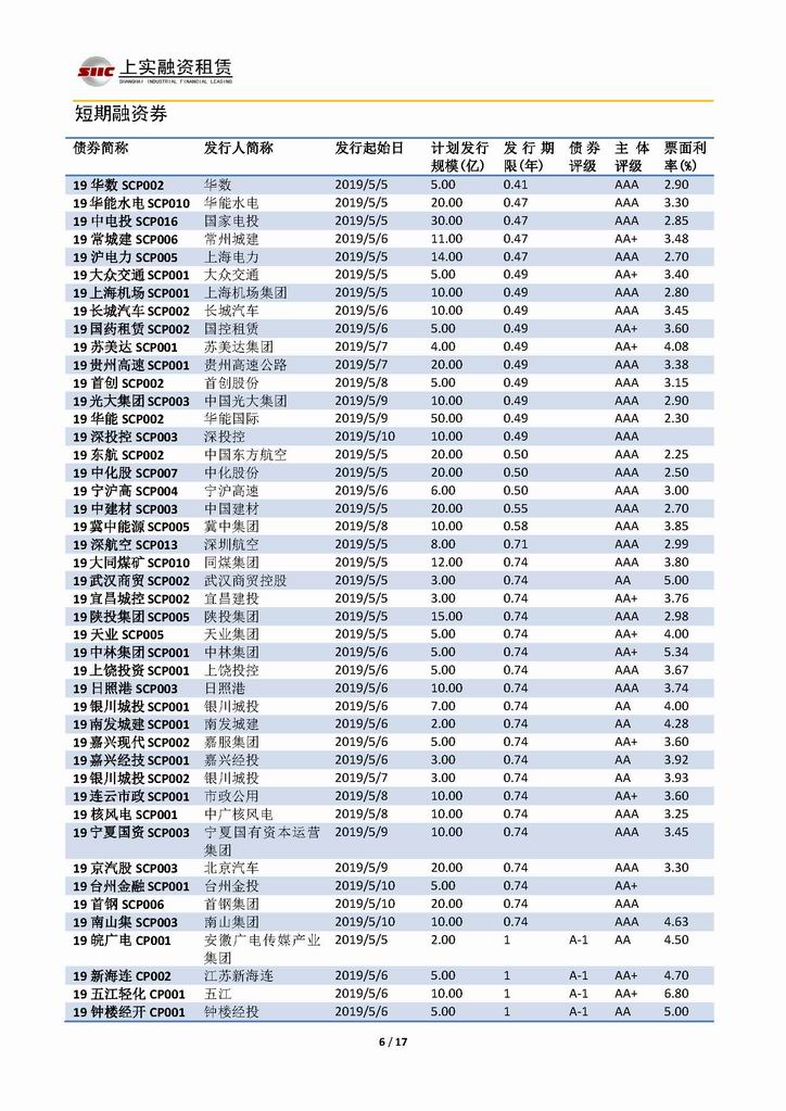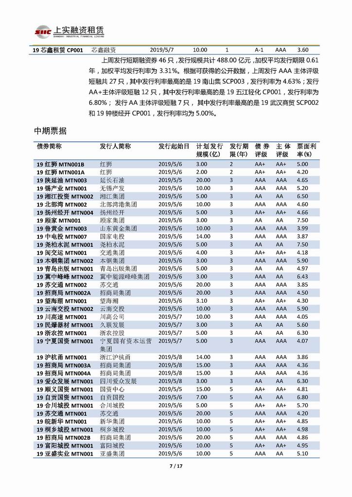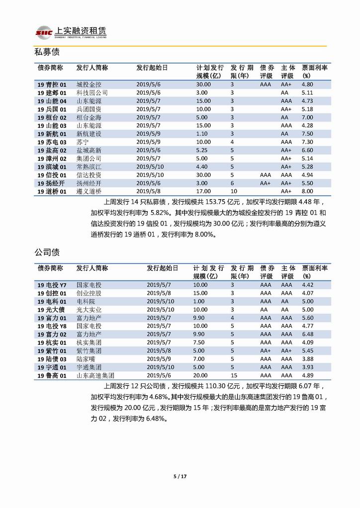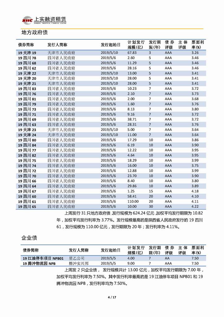 | 當(dāng)前位置:新聞中心 > 上實(shí)-融資工具周報(bào)20190503-20190510 | |||||