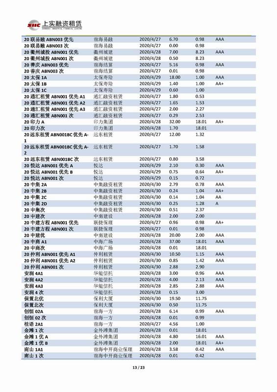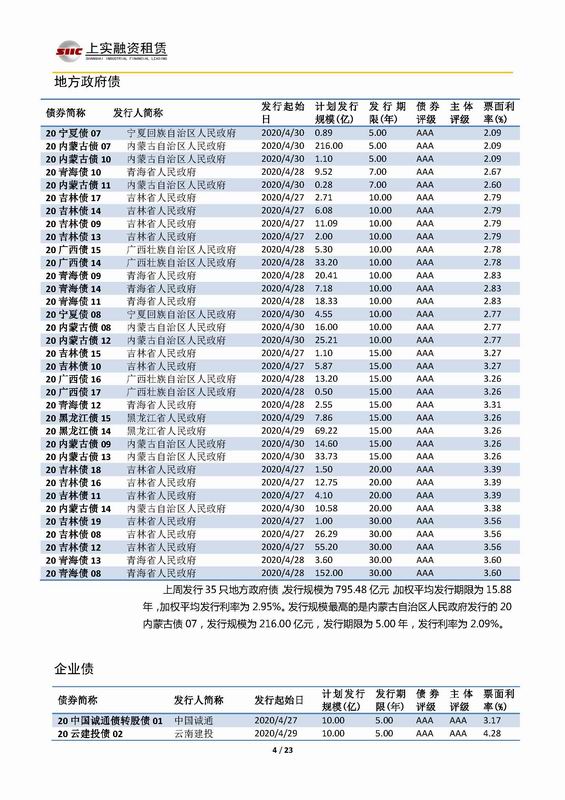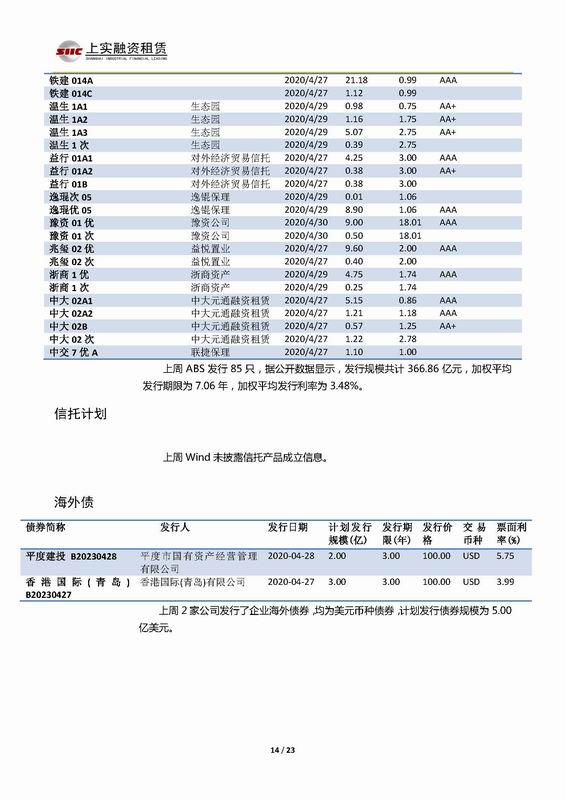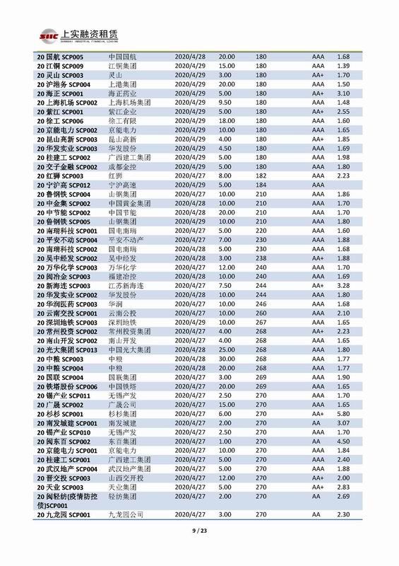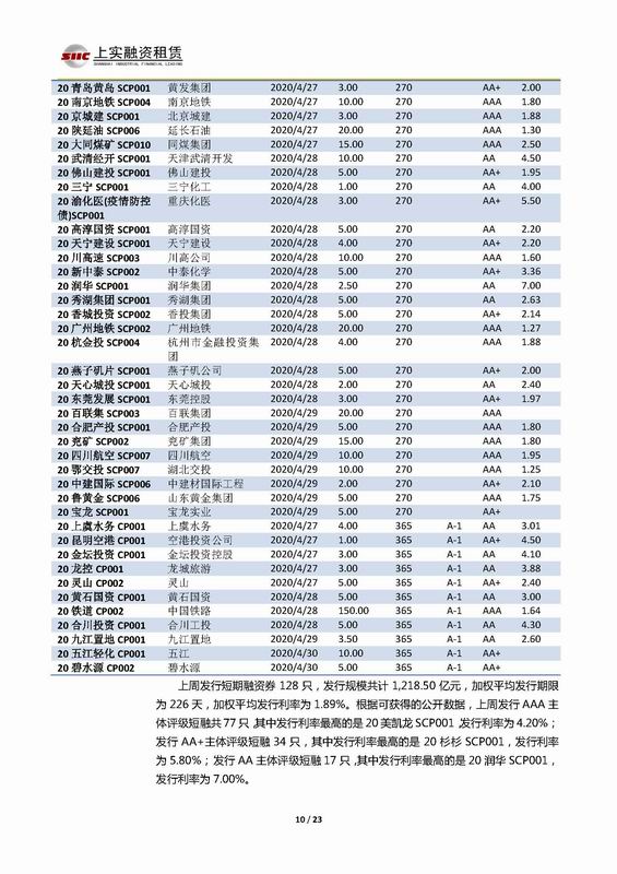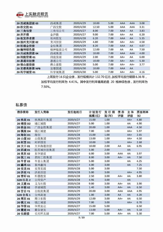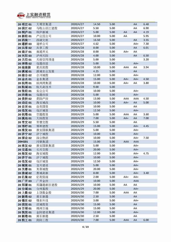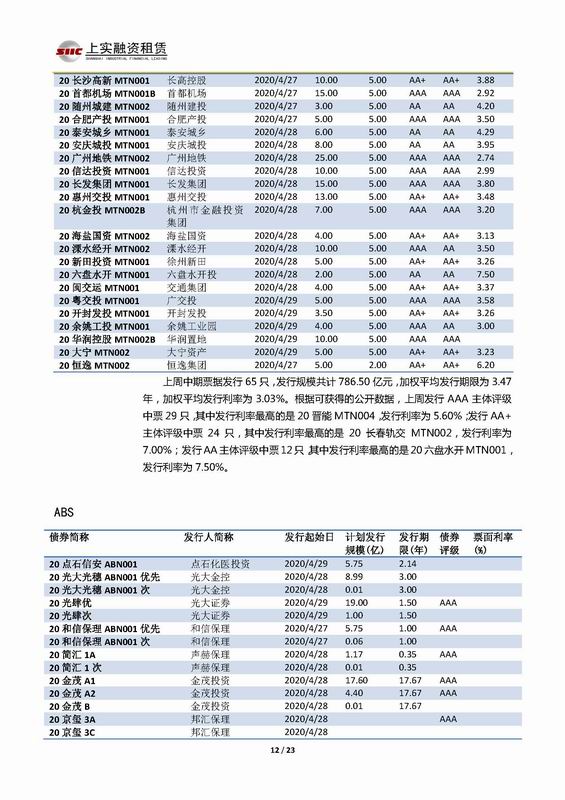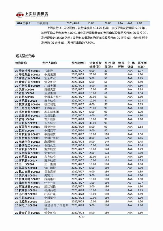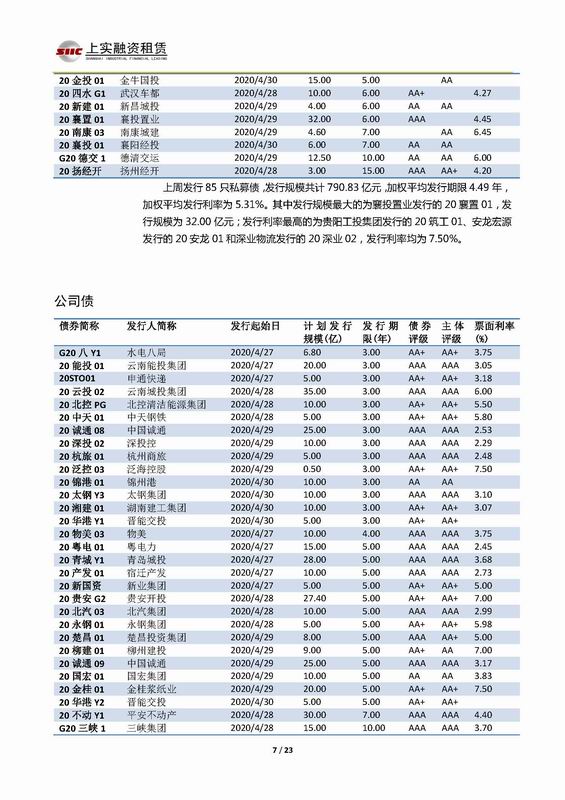 | 當(dāng)前位置:新聞中心 > 上實-融資工具周報2020.4.27-2020.4.30 | |||||