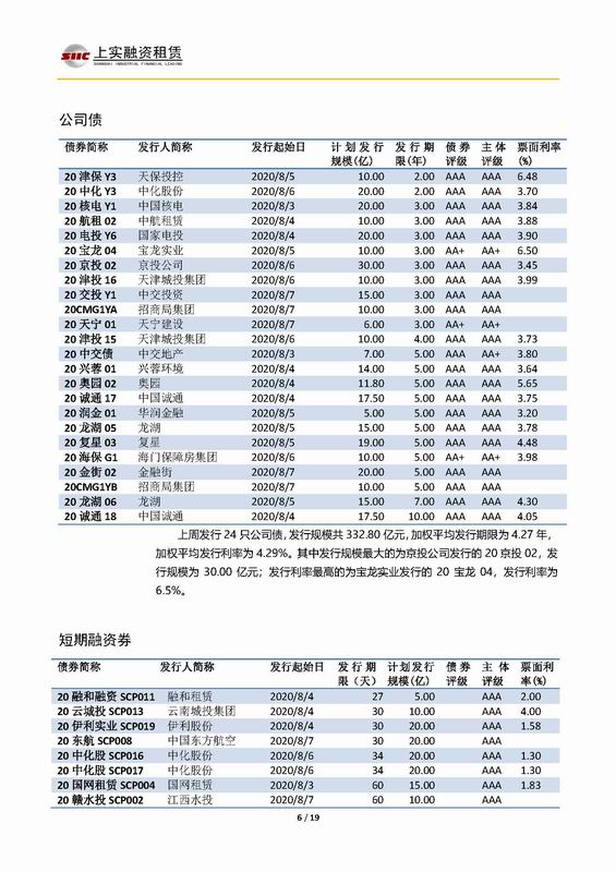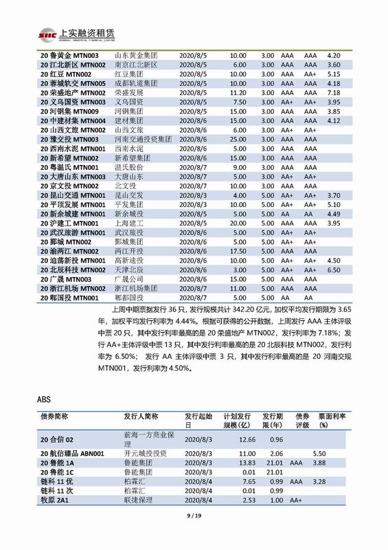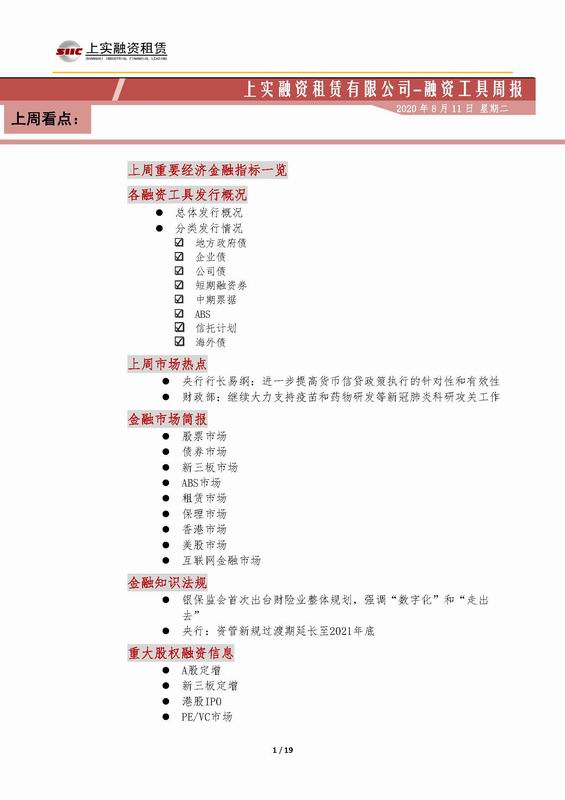 | 當(dāng)前位置:新聞中心 > 上實-融資工具周報2020.8.3-2020.8.7 | |||||
