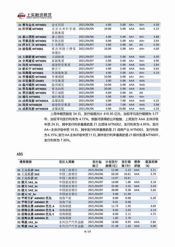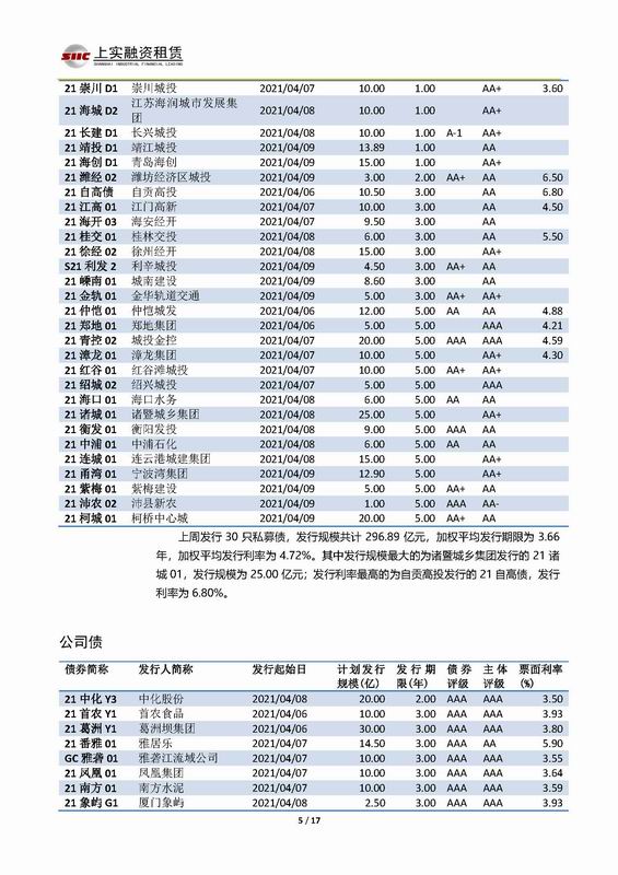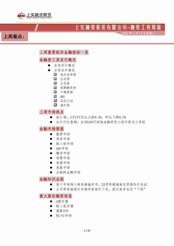 | 當(dāng)前位置:新聞中心 > 上實(shí)-融資工具周報(bào)2021.4.5-2021.4.9 | |||||