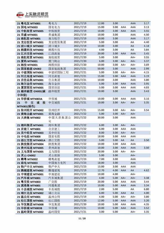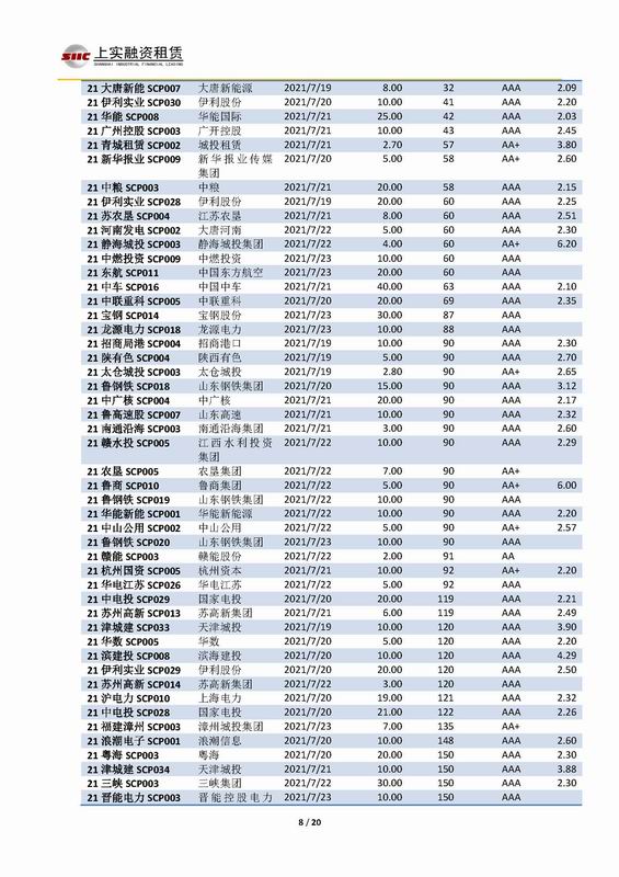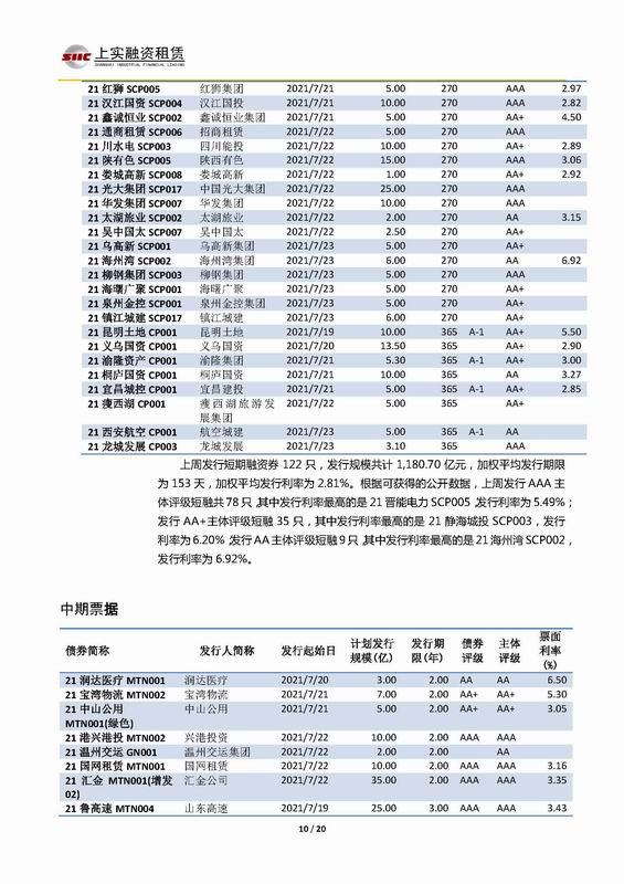 | 當(dāng)前位置:新聞中心 > 上實(shí)-融資工具周報(bào)2021.7.19-2021.7.23 | |||||