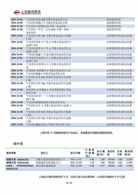 | 當(dāng)前位置:新聞中心 > 上實-融資工具周報2021.11.29-2021.12.3 | |||||